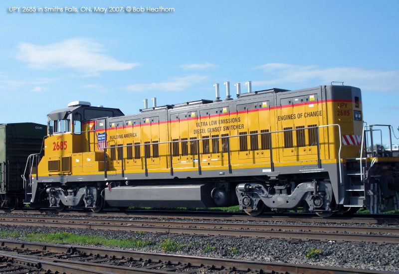 UPY 2685-2688 were spotted at CAD in early May 2007. From photo evidence from several sources. They are the first four of 15 units to be built at CAD (presumed to be UPY 2685 to UPY 2699). From Railpower annual report 2006. |