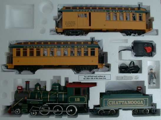 As of October 2000, a new set, the Chattanooga Railroad, appeared at Costco stores for $90. The set has a Christmas style paint job on the engine and a couple of yellow coaches. I grabbed one on impulse and I found that Bachmann has made some serious improvements over the last few years. This one runs as smoothly and quietly as any large scale loco and is clearly worth the money. Don't expect that ALL of the Big Hauler traits have been fixed however, you'll still have to tweak on it a little.