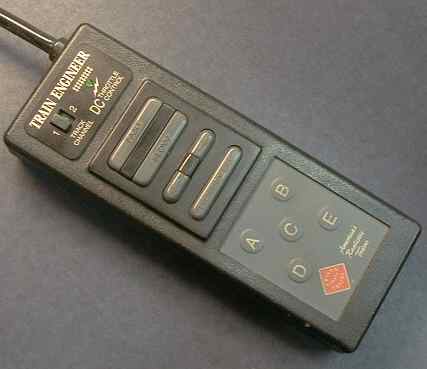 [ Top ]I have never used the original Train Engineer system, but many people have used them with good results. The system operates at 27 MHz. Programming was done with DIP switches inside the transmitter and on the receiver. The unit was claimed to handle 10 amps, but it never really could deal with that much current for any length of time. 3 to 5 amps is a more practical load.. Old style transmitters and receivers will work with the newer versions of the TE, however there are some restrictions. The receiver does not seek, so it will work with the newest transmitter only on frequency number 1.