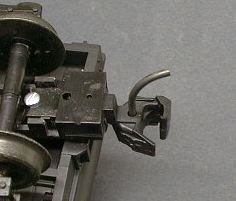 The drawbar design is different that other Aristo locos and I think that it is generally better. Unlike the design on the Aristo Pacific (which is a major pain in the backside to connect or disconnect) it is easy to get the engine and tender connected, and when the drawbar finally latches under the tender, there is a reassuring click. I have had no difficulty with the drawbar separating, even under very heavy loads.
