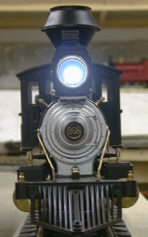 The C-16 comes with a standard track powered, nondirectional incandescent headlight. It is fairly bright the way it is, but I elected to install a white LED in place of the bulb. More information on bright white LEDs can be found on my White LED Tips page.