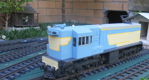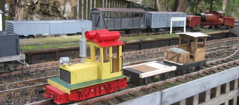 Graeme's little works train. Battery power with switch on hood. AA cells crammed in everywhere!