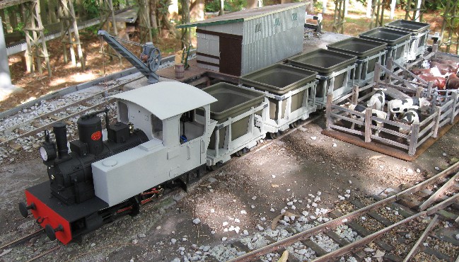 Geof has bashed a Steinz into a quarry loco, and made a string of small hoppers from butter containers. see Geof's website for more details. here