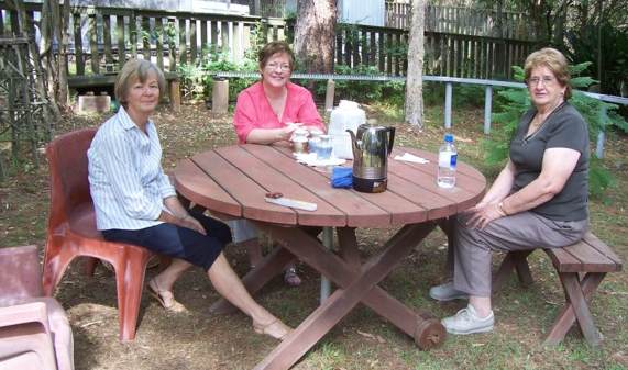 The long suffering ladies await lunch. Pauline, Chris and Pat.