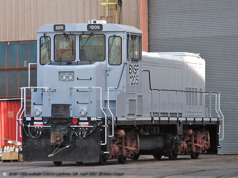 CP 1704 was moved to CAD in Lachine and stripped in early 2007, emerging as BNSF 1205 in primer, with new trucks and no fuel tank. The unit moved south in late April 2007 for conversion to fuellcell-hybrid. See the website of the Fuelcell Propulsion Institute for more details. From photo evidence and discussions. |