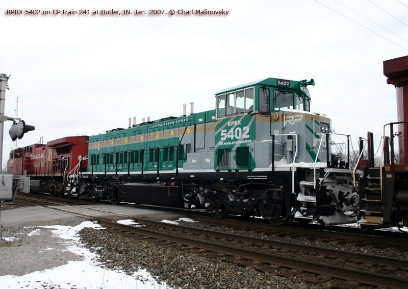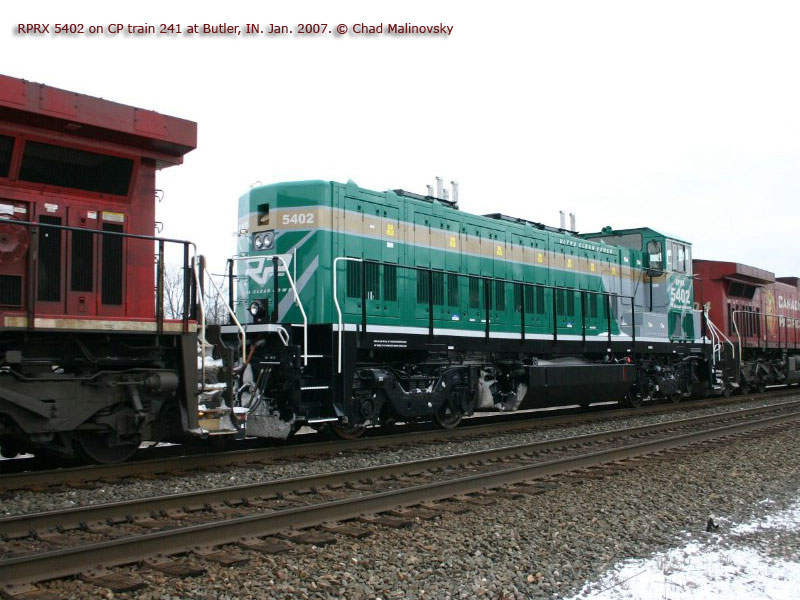 RPRX 5402 in transit as the second unit on CP train 241 in Butler, IL. Jan. 20, 2007. Photo by Chad Malinovsky. Click to enlarge. |