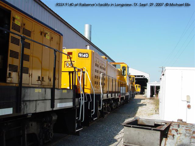 Railserve 9140 sits in a line of stored units in Longview, TX. Photo by Michael Ellis. Sept. 29, 2007. Click to enlarge. |