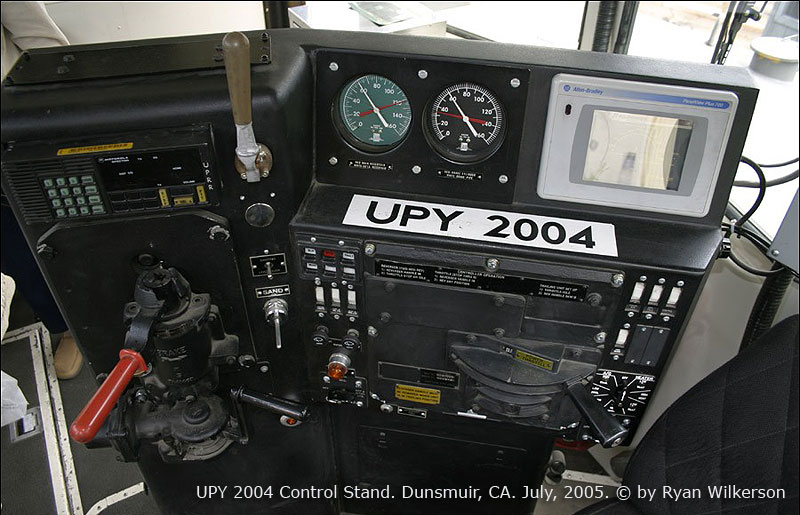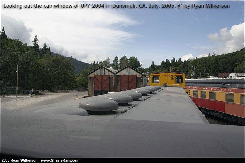 Cab view of UPY 2004 in Dunsmuir, CA. July, 2005. Photo by Ryan Wilkerson. Click to enlarge. |