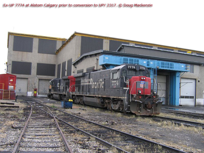 UP 7774 at Alstom's shop in Calgary, AB prior to conversion to UPY 2317. Photo by Bob Mackenzie. Click to enlarge.