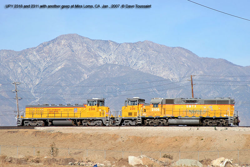 Y2318 in the company of Y2311 and a leased Geep at Mira Loma, CA. Jan. 2007. Photo by Dave Toussaint. Click to enlarge.