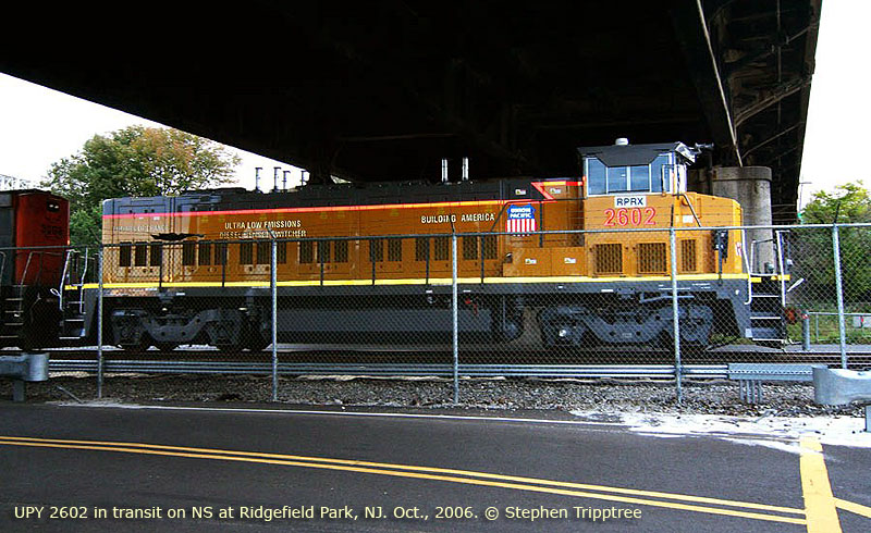 UPY 2602 in transit on Norfolk Southern with RPRX reporting marks. Photo by Stephen Tripptree. Oct. 6, 2006. Click to enlarge.