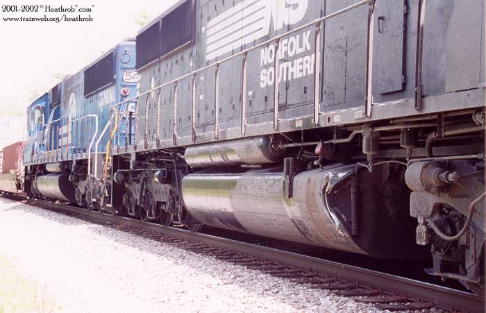 Here is a better view of the damage to the locomotives fuel tank and the splatter of fuel from the tractor. Man, was everyone lucky this day!