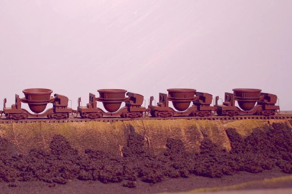 A few views of my latest project, the slag canyon. First, a set of thimbles ready to dump: