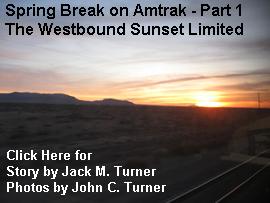 Eastbound On The Sunset Limited: by Jack M. Turner. Following our Panama Canal cruise aboard the "Island Princess" and a day of sightseeing between San Pedro and Malibu, we headed to Los Angeles Union Station to board the eastbound Sunset Limited. We spent a couple of hours exploring the magnificent station and... Read More>> |
