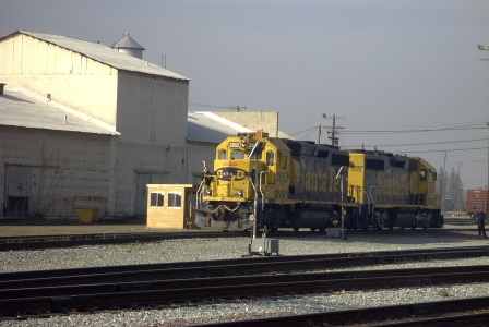 SD 40-2 6905 crawled up behind the other freight. Warbonnet 573 leads another freight.