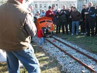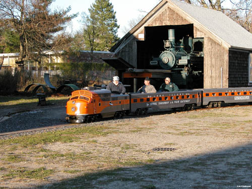 On November 15, 2003, the Long Island Garden Railway Society was present at the Railroad Museum of Long Island's dedication of its newly refurbished Long Island Railroad Railroad Crossing Shanty. The following are photos from the event...