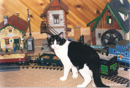 Another of our 5 cats, Bovine, getting into trouble on the layout