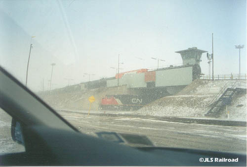 Once again, on our January of 2000 pilgrimage to Toronto, we stopped of at the Canadian National Rail Yard. What a sight. We had to sneak in again, as we did last time. The day was freezing, the low that night was -9°F with a wind chill of 35 below 0! The high, only 5°F, it was 1° when we paid our visit to the yard, with a heavy, wind blown snow fall. Due to the inclement weather conditions, the photos needed alot of work in Photoshop 5.5, however, I am very pleased with the results. The following are most of the 80 or so photos we took.....
