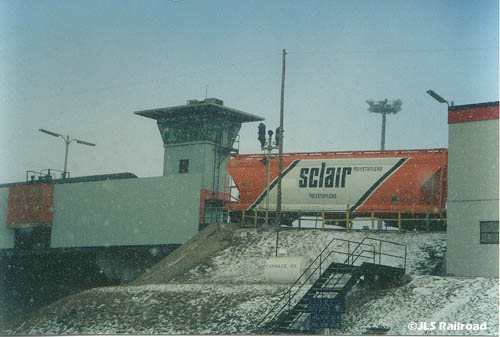 After being uncoupled, the Sclair hopper rolls down the hump under it's own power, pulled by gravity down the grade. It will roll into the yard and correct siding.