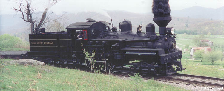 Every Year, the CALS (Chesapeake and Allegheny Live Steamers) holds a private run at the Cass Scenic Railway. They basically rent the railway for the weekend, limiting the total number of people on the entire railway to members of live steam clubs (no more then 75 to 100 people total). The lack of people makes the weekend special, the railroad was meant for 75, not 400 to 500 as is usually present at Cass. In addition to the lack of people, Cass ran two trains for us, so there were only 40 people per train! This years journey, May 5 through 7, was great. The first day, the 10 hour train ride took us over the mountain and down the valley to the Norfolk and Western MainLine, a trail seldom traveled by the regular public. The second day we took the more traditional ride up to Bald Mountain, what a view. The following photos were taken by myself and George Quiles, a member of the JLS Railroad. Enjoy...