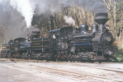 Every Year, the CALS (Chesapeake and Allegheny Live Steamers) holds a private run at the Cass Scenic Railway. They basically rent the railway for the weekend, limiting the total number of people on the entire railway to members of live steam clubs (no more then 50 to 75 people total). The lack of people makes the weekend special, the railroad was meant for 75, not 400 to 500 as is usually present at Cass. This year's journey, May 3 through 5, was fantastic. The first day, the 10 hour train ride took us over the mountain and down the valley to the Norfolk and Western MainLine through Spruce. The second day we took the more traditional ride up to Bald Mountain. Unfortunately, due to track work, we were not able to travel all the way up to the summit, falling short by about a mile. The follow is a small sampling of the photos taken on this trip. Many more are available upon request, including detailed photos of the locomotives of the Cass Scenic Railway. Enjoy...