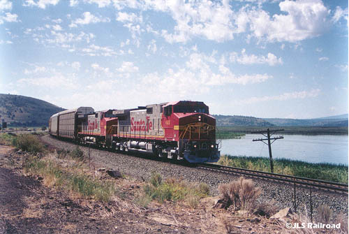 Here comes a Santa Fe Dash 8 pulling a mile long freight!