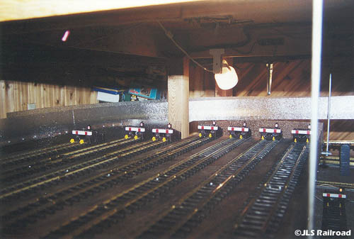 The following photos illustrate the Completed Hanging Yard. Initial planning stages began way back in December of 2000, with actual construction beginning June of 2001. Due to the lack of scenery (the M-Yard is a functional storage yard rather then a prototypical model like the H-Yard), work proceeded fairly quickly, especially with the help of Skip Densing, a fellow member of the JLS Railroad. Although no where near as complex as the H-Yard, construction took the better part of 3 months, finally being completed Thursday, August 23, 2001.