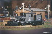 I am a member of the Large Scale OnLine, or LSOL. I have been frequenting the LSOL website for about 3 years now, never having been a member. I finally got around to sending in my membership in June, knowing nothing about any contest to win a BachMann Climax with your own custom logo! Well, 2 weeks later, 2 WEEKS, I receive a letter stating I had won a Climax. Well, like all people who win something (unless they are overly gullible), I said something to the effect of "I'll believe it when I see it". Then BachMann contacted me, I knew it was real at that point. Over the next few weeks, we came up with the logo for the JLS Railroad to be placed on the side of the Climax, and the engine number: 31 (my 31st engine, click here for the JLS Railroad Motive Power Roster). About a month and a half later, after first having been notified I had won, the Climax arrives on my doorstep. Here it is....