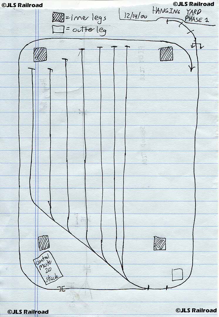 The first plan drawn up for the Hanging Yard. Basically a scribble drawn on a piece of scrap paper, this is what I initially envisioned the yard to look like.