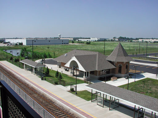 | . Fifty weeks after Mister Gunn passed by the location at CP Rail MP 63, a new station was complete and on August 12, 2006 dedicated for use to begin two days later on Monday, Aug. 14. Click on image below for a video of the first train leaving the new station enroute to Milwaukee. |
