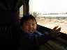 (50K) Andrew enjoying his trip past the Amtrak coach yard. |