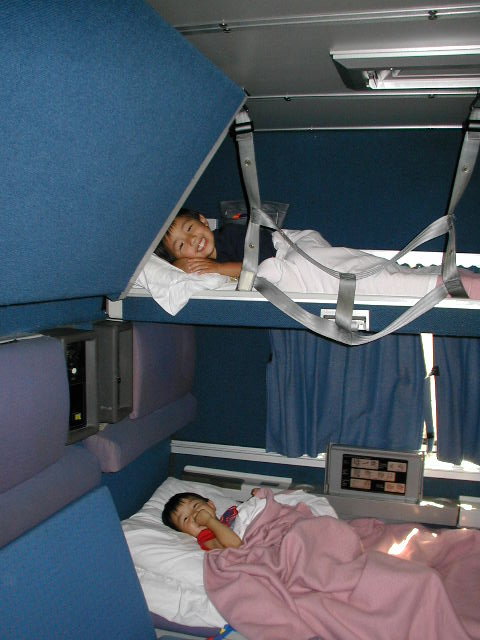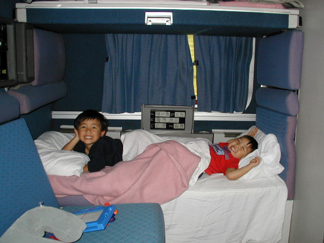 (58K) Nathan and Andrew trying out the small beds in the Family Room. |