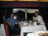 (57K) Les Higa and Steven Reynolds eating dinner in the diner fully equipped for railfanning; Les with his Radio Shack scanner and antenna, and Steven with his portable GPS unit. |