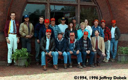 All of the KJ's employees posed in 1994 on the occasion of the retirement of Dan Kendrick. Kendrick, a former Rock Island switchman, spent his entire railroad career in the Keokuk yards. |