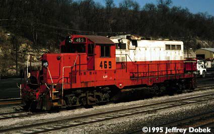 The Cummins-powered HE-15's did not work out well, and in 1994 the KJ purchased two GP-10's from the Iowa Interstate. Number 469 shows off its ICG heritage. |