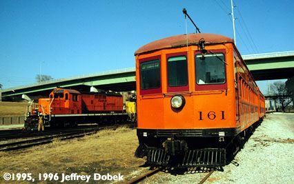 Four ex-SEPTA (Philadelphia & Western) trolley cars were owned by the KJ, and leased to the Trans-Mississippi Trolley Company. Two of the cars were restored to service (along with a 2-axle generator car) and used for excursions along the KJ. One of these cars also staked its claim to fame during the Flood of 1993 when it shuttled passengers across the nearby Union Electric dam. |