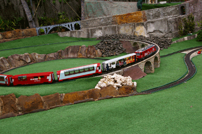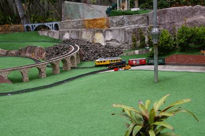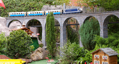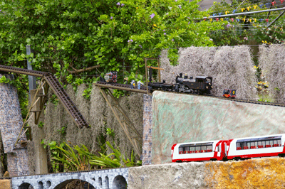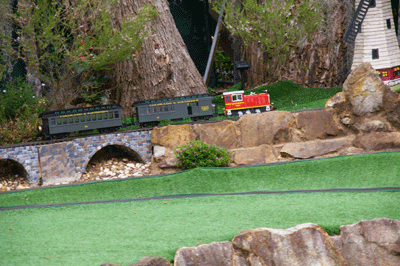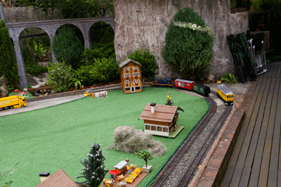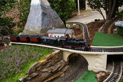 Bryan's railway uses the entire backyard including Barbara's garden area. As well as a great layout to see, courtesy of Bryan, Barbara has produced a beautiful garden full of roses and petunias.