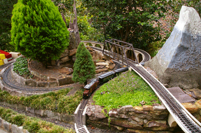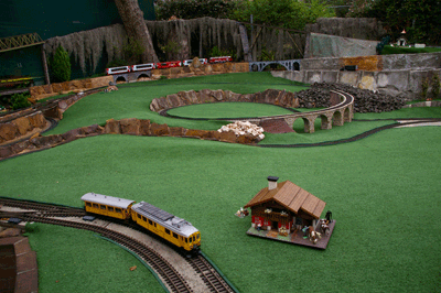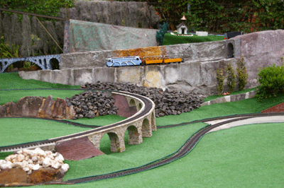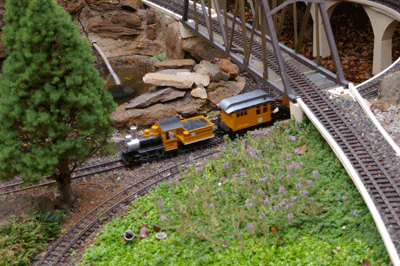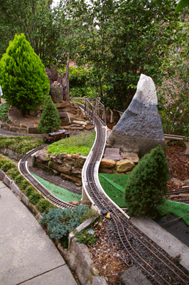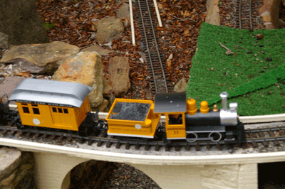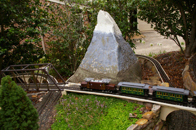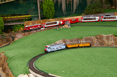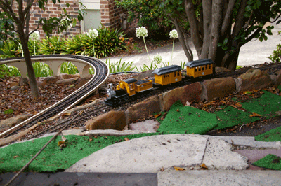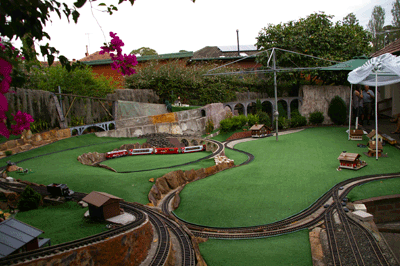 Bryan's railway uses the entire backyard including Barbara's garden area. As well as a great layout to see, courtesy of Bryan, Barbara has produced a beautiful garden full of roses and petunias.