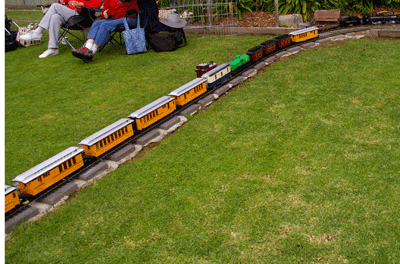 Our last Club Day was held on 13 July in Cooranbong at the home of Rod and Jessica. It was a cool day with a small turn out of members as quite a few are presently overseas. Everyone enjoyed themselves, especially Rod and Jessica's dogs. This was the last running day for Rod in this location, as on the next day the layout will be lifted in preparation for its new home. Some members suggested a one minute silence. The club would like to thank the hosts Rod and Jessica for making it such a successful day.