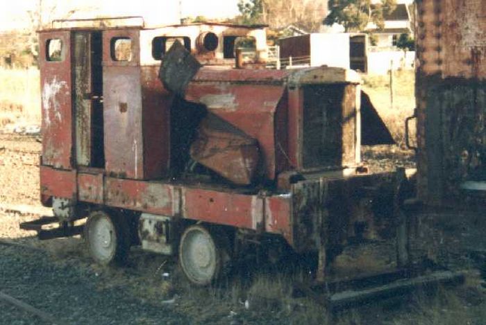 Mounted on bogie from Napier electric tram, 3'-6" gauge 1959 Tawa Timber Co. (later Robert Holt & Sons Ltd.) Tawa Siding, Napier. ?-1965 Robert Holt & Sons, Napier. Used to shunt wagons of logs under a gantry. 1981 Body on display at Arthur Miller School, Napier. (bogie may have gone to MOTAT.) |
