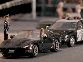 But there is another side to model railroading other than operation, the artistic side. This includes scenery, lighting, and sound design. At The Lone Wolf and Santa Fe Railroad we believe that model railroading is an art form and like to create scenes on the layout. After all, "All the world is a stage." Along with the detailed locomotives and weathered freight cars, there are hundreds of people and animals, cars, trucks, motor cycles and bicycles. They all play a role in bringing life to this miniature world. |