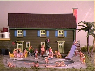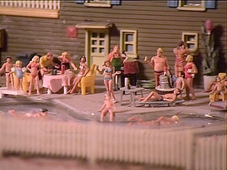 The scene includes swimmers, sunbathers, a family BBQ and even a scratch built keg. This scene is following the holiday theme and represents The 4th of July.