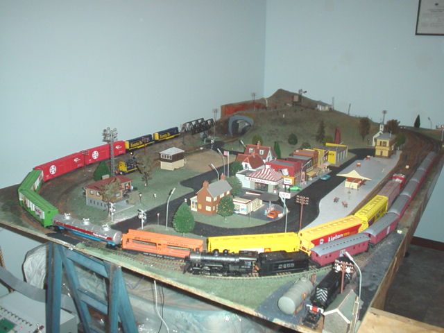 made overbridge and tunnel. From that 1st introduction to model railroading, I caught the bug. Next birthday a Santa Fe GP20 arrived, and later some Amtrak Passenger cars that set the scene for me selecting the early 1970´s as my era. The layout grew to two ovals and a siding. Buildings sprung up along the road way, and more and more freight cars were purchased with my pocket money savings. By the mid 80s the layout still 4 x 8" was now a busy little town, and I worked with dad to extend the layout by a foot on each side to form 6 x 8 feet. Along the outside of the main line I had loco facilities and a tram way that horse shoed around the main line and down the new busy main street. This layout lasted until the late 80´s when finally the chipboard in the baseboard gave way, and layout #2 was under construction. The new layout had a solid pine frame and 12mm ply baseboard, again 4 x 8", but this time a lot of planning went into the track design, which accommodated longer trains, an entire mountain side and small township with several busy railroad industries. Still all dc powered, there were carefully designed track blocks, signalling and electrified turnouts throughout. The problem I had however was my ever expanding multitude of trains was outgrowing the layout. I maintained this layout until 2003 when I sold it to my good friend Alan. Layout #4 is currently being designed ready for
