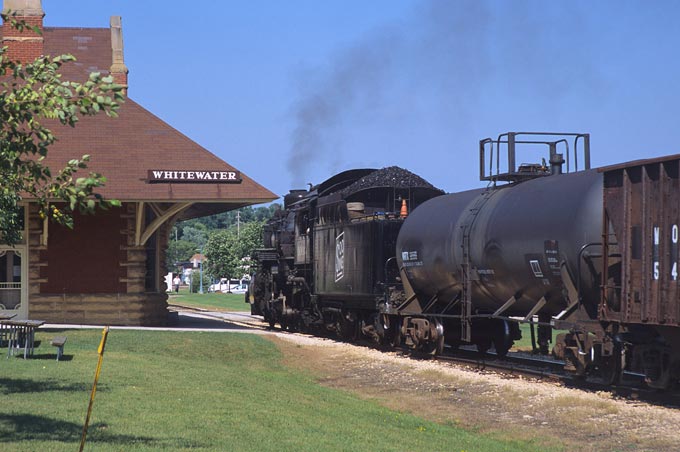 And rolling by the old depot in Whitewater.