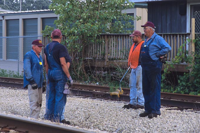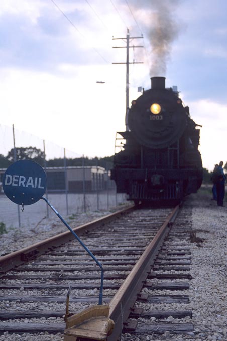 With the derail set for protection, the locomotive simmers away at