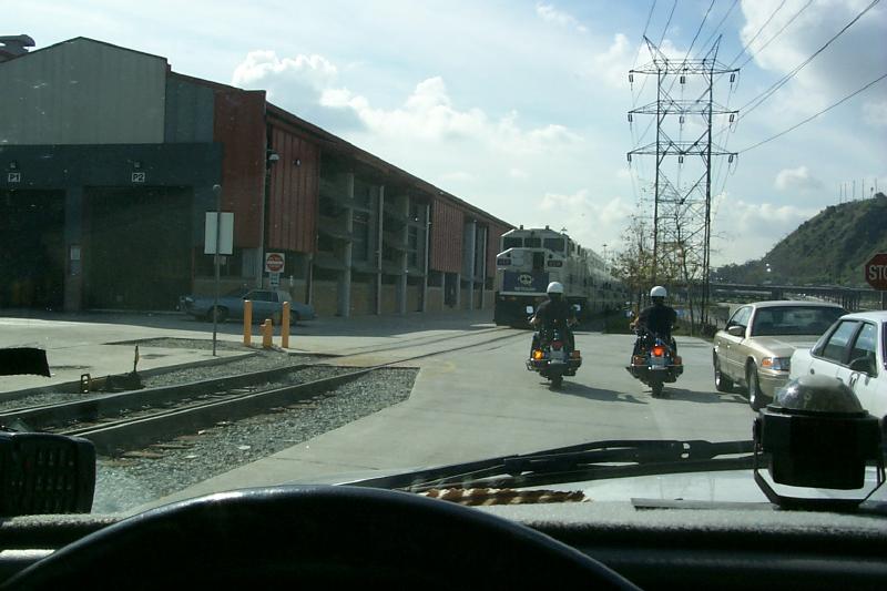 My unofficial Glendale Police escort into the Metrolink Central Maintenance Facility at 9:30 A.M.. |