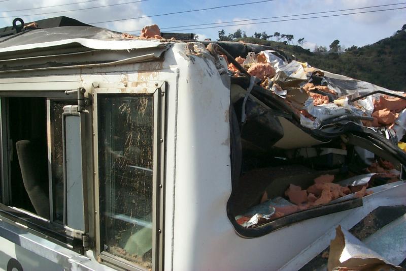 Injured and on the floor, the Engineer radioed the next train coming from Ventura full of passengers to stop. The next train coming from the other direction was able to stop just 60 feet from the wrecked truck. The passengers expressed their thanks and praise for Elder's actions. |