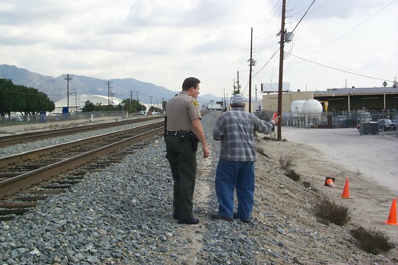 Deputy Smith gave the fellow a friendly "warning" and explained to him why he was in danger, and where the safe limits of watching the trains are. The man stated he didn't know and returned a friendly "thank you". He then moved off the tracks and we set out upon our way. |