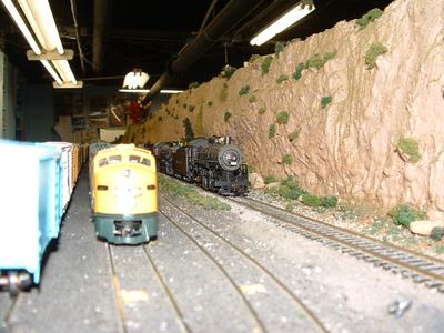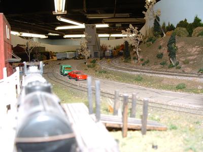 This doesn't reflect any actual location, to me the model railroad layout is a place where I can try to build a world for my models to operate in. There's no prototype, no set-in-stone time period or even era. I love to experiment with the scale models, automation, electronics, mechanics, etc. of the hobby. In order to try to keep finances under control, I try to focus my collection on roads in operation in Kansas City (specifically Missouri regional railroads) but in truth anything goes. I also have a small contingent of equipment from the local roads where I live now (Peoria, IL).