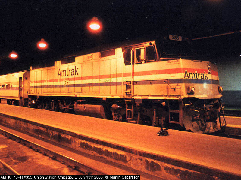 Amtrak F40PH #355 at Union Station, Chicago, IL, July 13th 2000. |